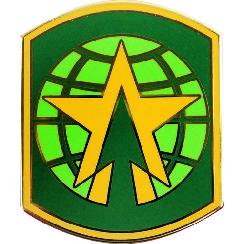 Criteria: This item is the Combat Service Identification Badge for the 16th Military Police Brigade. Green and gold are the colors of the Army Military Police. The arrow and star symbolize power and authority while the globe signifies the worldwide scope of their mission. This item is sold individually and made for wear on the Army Dress Blue (ASU) Uniform.