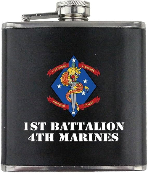 1st Battalion 4th Marines Full Color Stainless Steel Leather Wrapped 6oz. Flask