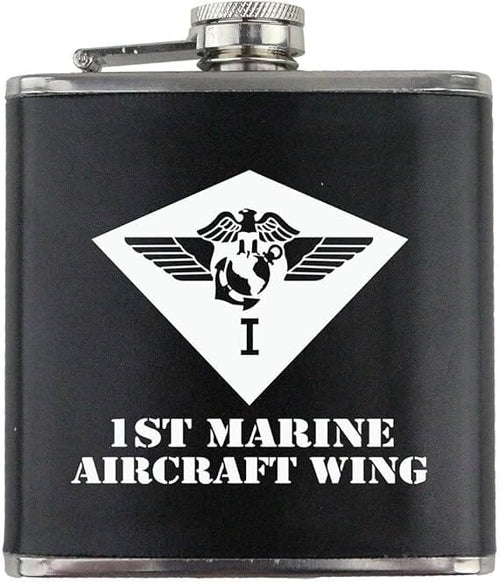 1st Marine Aircraft Wing Subdued Stainless Steel Leather Wrapped 6oz. Flask