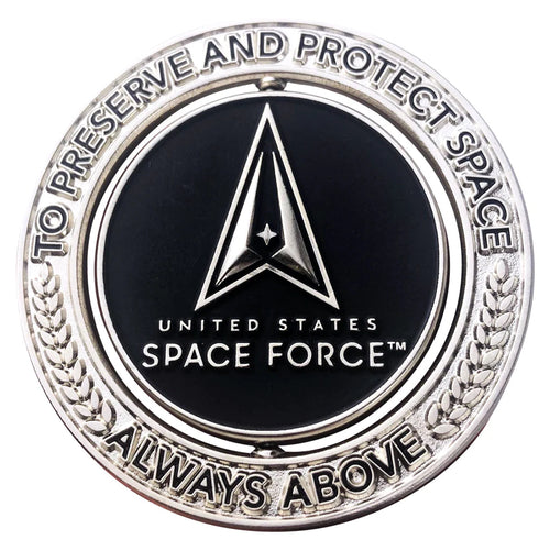 The United States Space Force has granted official manufacture authorization for this premium spinner coin. The official USSF logo is displayed in three dimensions on the obverse, which has a matte black backdrop. The USSF motto, "Sempra Supra," which translates to "always above," is illustrated on the reverse side of the coin with a photo-domed image of a US eagle flying high above. This coin, which is among the first to be granted official USSF licensing, would be a wonderful addition to any coin collection. Before they are all gone, get yours today! - are charged separately.