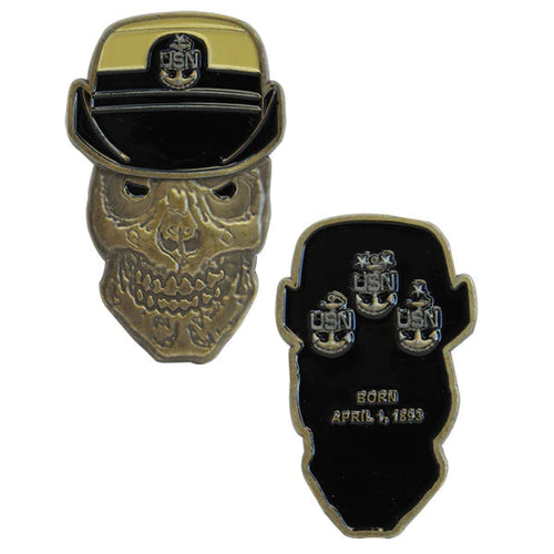 2" USN Female Sr. Chief Petty Officer Skull Antique Coin