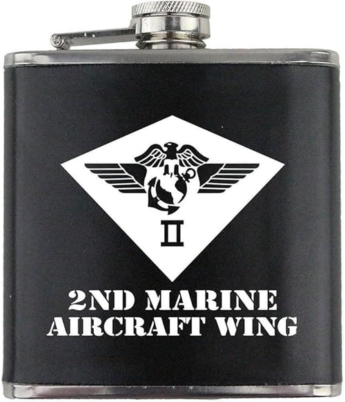 2nd Marine Aircraft Wing Subdued Stainless Steel Leather Wrapped 6oz. Flask