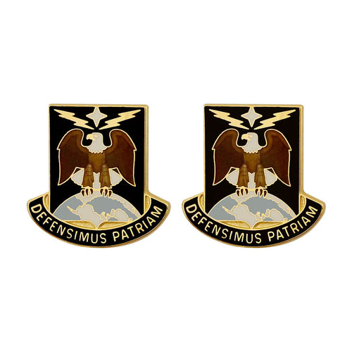 Criteria: These distinctive unit insignia (DUI) are worn by the 49th Missile Defense Battalion. Defensimus Patriam is their motto and means Defending the Homeland. A unit of the Alaska Army National Guard (AK ARNG). Unit crests are worn on the Army Class A Uniform (Greens) and Army Service Uniform (ASU).