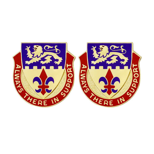 Criteria: These distinctive unit insignia (DUI) are worn by the 55th Personnel Services Battalion. Always There in Support is their motto. Headquartered in Friedberg, Germany. Unit crests are worn on the Army Service Uniform (ASU) and Army Class A Uniform (Greens).