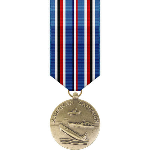 The American Campaign Medal - WW II (ACM) is granted to personnel who served one year of consecutive duty between December 7, 1941 to March 2, 1946 and within the continental borders of the U.S., as well as to those who served 30 consecutive or 60 non-consecutive days of duty outside the borders of the U.S. but within the American Theater of Operations. The American Theater encompasses all of the U.S., most of the Atlantic Ocean, a portion of Alaska, and a small section of the Pacific bordering California and Baja California. The ACM was first created on November 6, 1942 and was originally issued as the "American Theater Ribbon" for those who served in the American Theater of Operations during World War II.