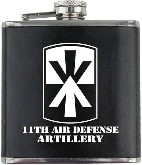 Army 11th Air Defense Artillery Subdued Stainless Steel Leather Wrapped 6oz. Flask