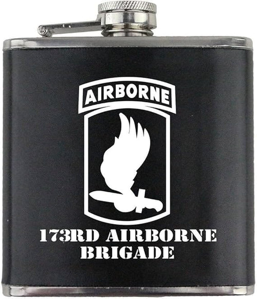 Army 173rd Airborne Brigade Subdued Stainless Steel Leather Wrapped 6oz. Flask