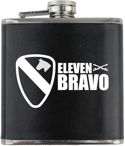 Army 1st Cavalry Division 11 Bravo Veteran Leather Wrapped 6oz. Flask