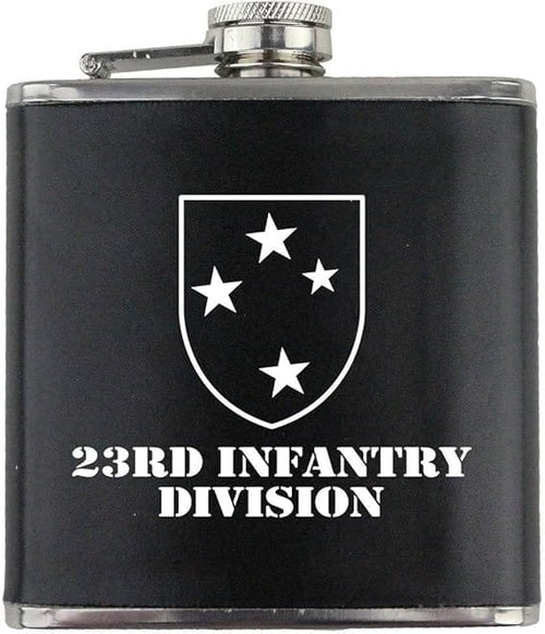 Army 23rd Infantry Division Subdued Stainless Steel Leather Wrapped 6oz. Flask
