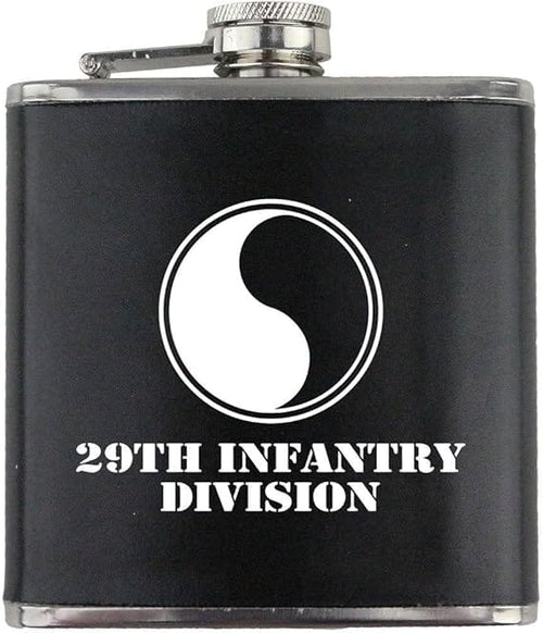Army 29th Infantry Division Subdued Stainless Steel Leather Wrapped 6oz. Flask