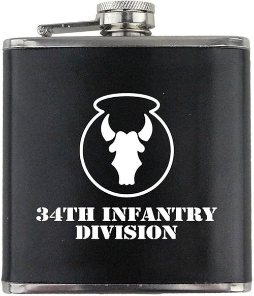 Army 34th Infantry Division Subdued Stainless Steel Leather Wrapped 6oz. Flask