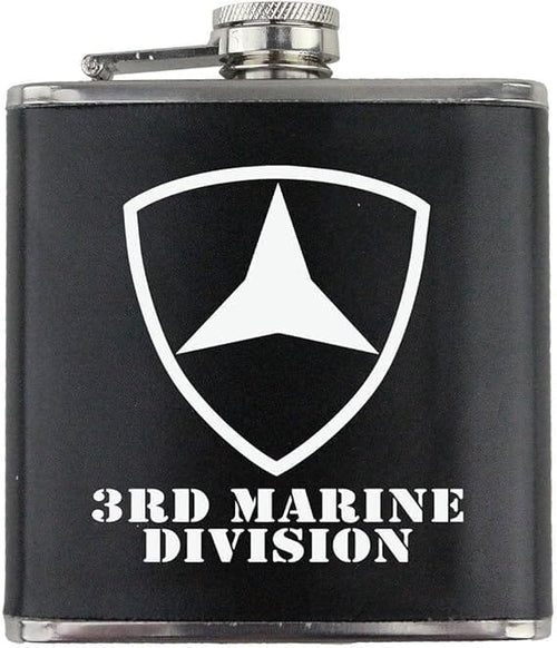 Army 3rd Marine Division Subdued Stainless Steel Leather Wrapped 6oz. Flask