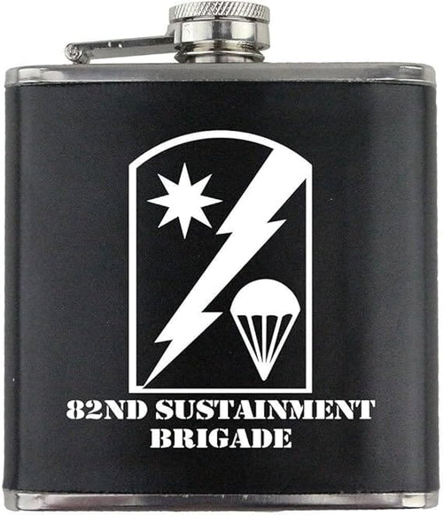 Army 82nd Sustainment Brigade Subdued Stainless Steel Leather Wrapped 6oz. Flask