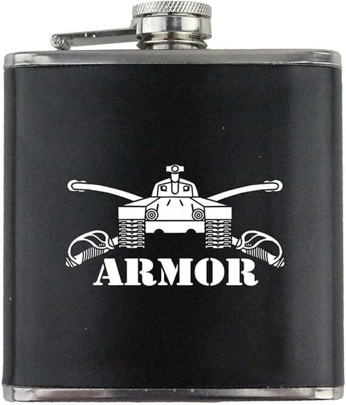 Army Armor Branch Military Stainless Steel Leather Wrapped 6oz. Flask