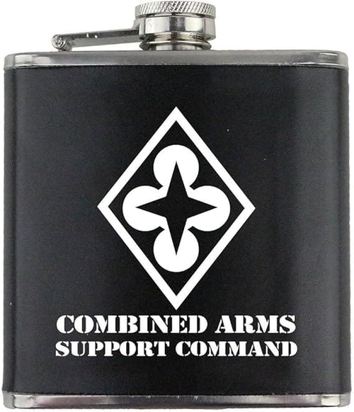 Army Combined Arms Support Cmd Subdued Stainless Steel Leather Wrapped 6oz. Flask