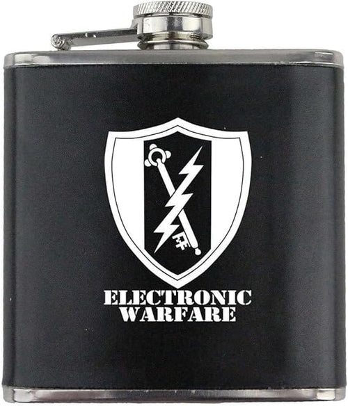 Army Electronic Warfare Branch Military Stainless Steel Leather Wrapped 6oz. Flask