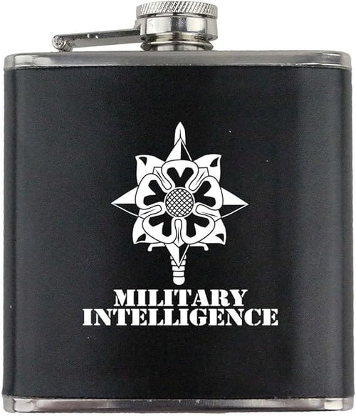 Army Military Intelligence Branch Military Stainless Steel Leather Wrapped 6oz. Flask