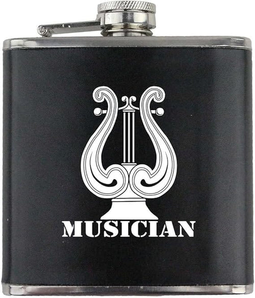 Army Musician Branch Military Stainless Steel Leather Wrapped 6oz. Flask