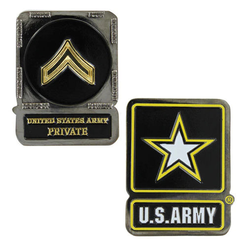 1 1/2" x 2" with plastic sleeve Army Coin: Private (E-2 / PV2 / OR-2)