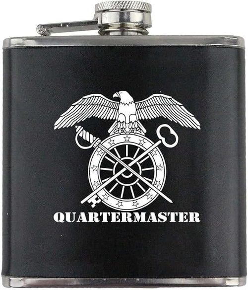 Army Quartermaster Branch Military Stainless Steel Leather Wrapped 6oz. Flask