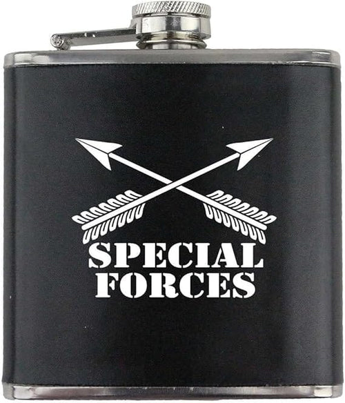 Army Special Forces Branch Military Stainless Steel Leather Wrapped 6oz. Flask