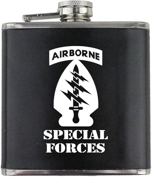 Army Special Forces Subdued Stainless Steel Leather Wrapped 6oz. Flask