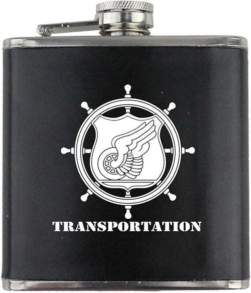 Army Transportation Branch Military Stainless Steel Leather Wrapped 6oz. Flask