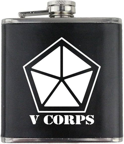 Army V Corps Subdued Stainless Steel Leather Wrapped 6oz. Flask