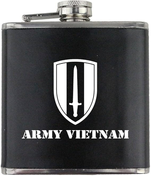 Army Vietnam Subdued Stainless Steel Leather Wrapped 6oz. Flask
