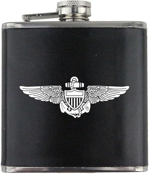 Aviator Badge Navy Veteran Leather Wrapped 6oz. Flask