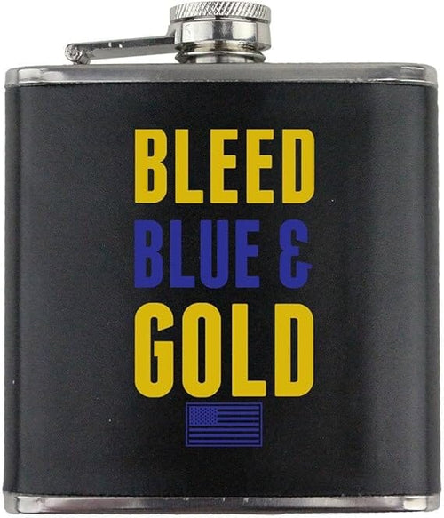 Bleed Blue and Gold Navy Veteran Stainless Steel Leather Wrapped 6oz. Flask
