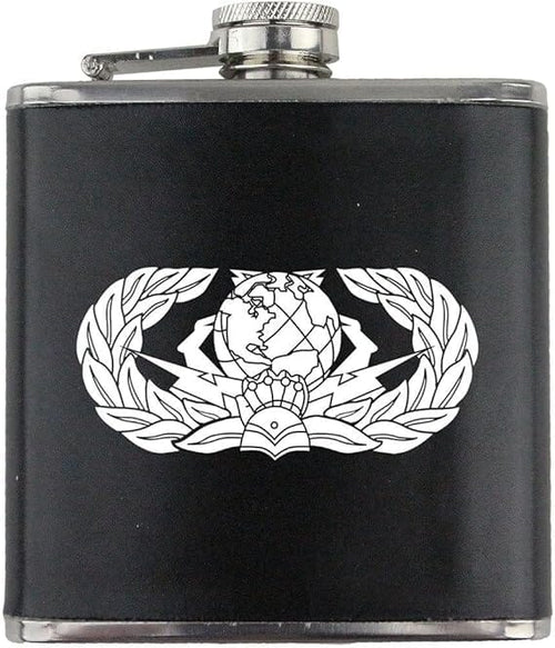 Cyber Support Badge Air Force Veteran Leather Wrapped 6oz. Flask
