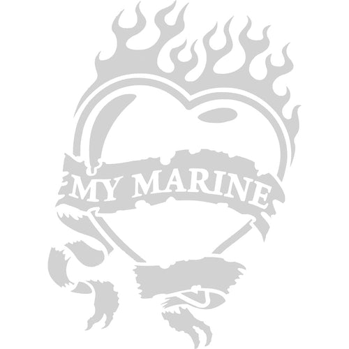 My Marine Heart And Flame 5" White Vinyl Transfer