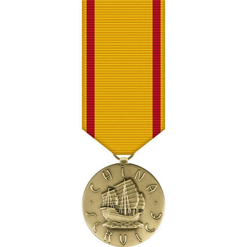 The Navy China Service Medal (CHISM) is a decoration presented to members of United States Navy, Marine Corps and Coast Guard who served in China from July 7, 1937 - September 7, 1939 or served from September 2, 1945 - April 1, 1957. Service members who served in the Asiatic-Pacific area from September 2, 1945 - March 2, 1946 may be eligible for the award if they did not receive the Asiatic-Pacific Campaign Medal. Individuals who participated in operations during both time periods are authorized to wear a bronze Service Star on their award ribbon.