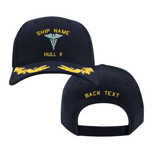 U.S. Navy Custom Ship Cap - Captain Scrambled Eggs -Navy Rating Badge Hospital Corpsman HM