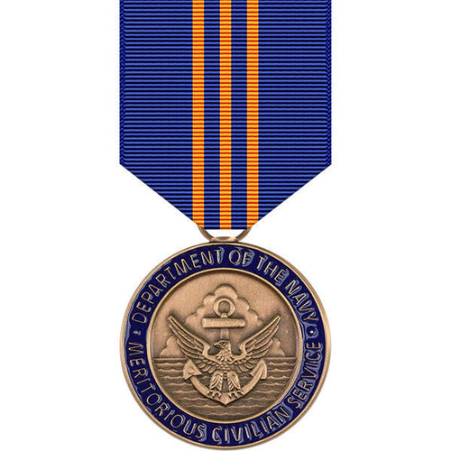 The Navy Meritorious Civilian Service Award Medal is a decoration presented by the United States Secretary of the Navy to recognize civilian employees who have provided exceptional services that have made a significant and positive impact on a specific activity or geographic location. It is the third highest honorary award that the U.S. Navy can bestowed upon a civilian employee, after the Navy Distinguished Civilian Service Award and the Navy Superior Civilian Service Award.