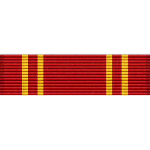 This is the New Mexico National Guard Medal of Merit Ribbon. Awarded to members of the New Mexico National Guard who provide meritorious service to the state of New Mexico. For subsequent awards bronze oak leaf clusters are presented. For 6th award a silver oak leaf cluster is affixed to the ribbon.