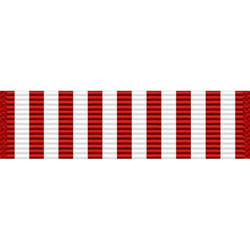 This is the Ohio National Guard Commendation Medal Ribbon. Awarded to service members of the Ohio National Guard who distinguish themselves through meritorious acts. Performance of normal duties that can be deemed "superior" does not merit this award, as the service must be clearly outstanding. For subsequent awards a bronze oak leaf cluster is presented, while a sixth award is shown by wearing a silver oak leaf cluster on the ribbon.