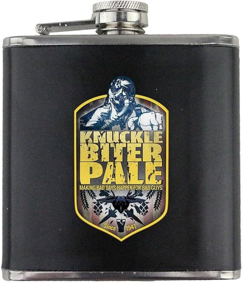 Original Air Force Knuckle Biter Beer Label Stainless Steel Leather Wrapped 6oz. Flask