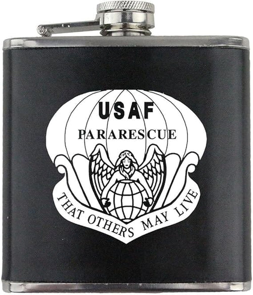 Pararescue Badge Air Force Veteran Leather Wrapped 6oz. Flask