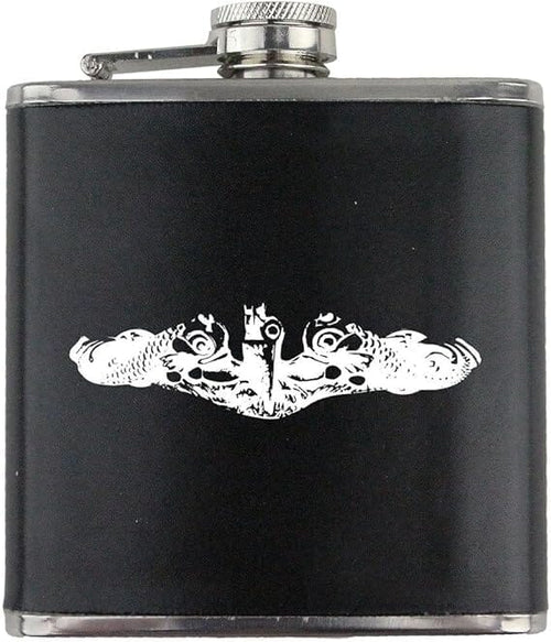 Submarine Warfare Badge Navy Veteran Leather Wrapped 6oz. Flask