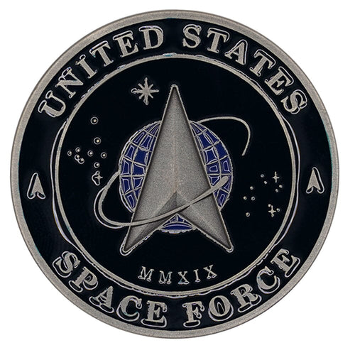 The U.S. Space Force Great Seal Challenge Coin is a commemorative coin that features the Great Seal of the United States Space Force. This type of challenge coin is often given to personnel, supporters, or collectors as a symbol of affiliation, recognition, and pride in the Space Force’s mission.