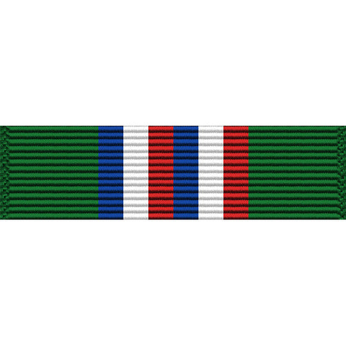 This is the Vermont National Guard Organizational Excellence Ribbon. It is awarded for outstanding service, below the unit level, to the Vermont National Guard. A bronze star device denotes an additional award, while a silver star represents a 6th award.