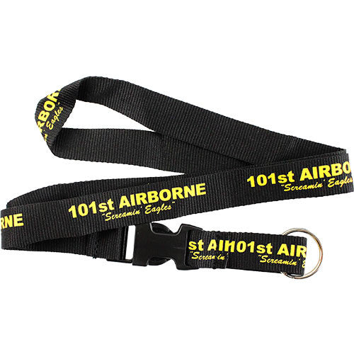 Criteria: The 101st Airborne Lanyard has "Screaming Eagles" silk screened onto it with a split ring and a easy to use side release buckle.