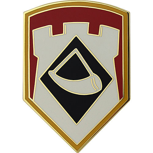 Criteria: This is the Combat Service Identification Badge (CSIB) for the 111th Engineer Brigade which is headquartered in West Virginia. Prominent in its design, the black diamond represents the abundance of coal in the state. The CSIB is worn on the Army's Dress Blue (ASU) uniform. Sold Individually.