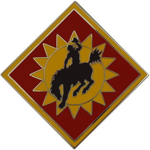 Criteria: This metal Combat Service Identification Badge (CSIB) is worn on the Army Service Uniform (ASU). Worn to reflect combat service with the 115th Field Artillery Brigade, Wyoming Army National Guard (WY ARNG). Sold individually.
