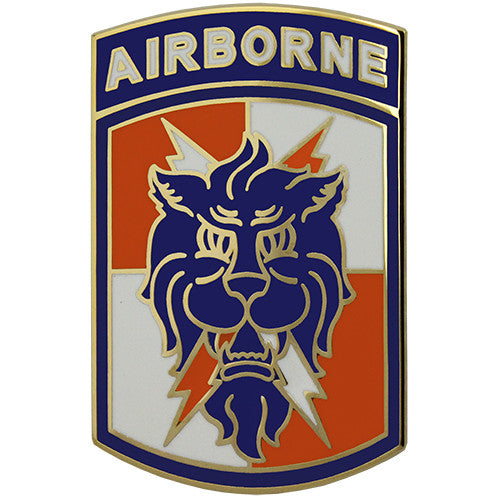 Criteria: This item is the Combat Service Identification Badge with Airborne tab for the 35th Signal Brigade. The colors orange and white allude to the unit's Signal designation. The lion is symbolic of courage and aggressiveness. The lightning flashes refer to the speed of electronic communications. This item is made for wear on the Army Dress Blue (ASU) Uniform and is sold individually.
