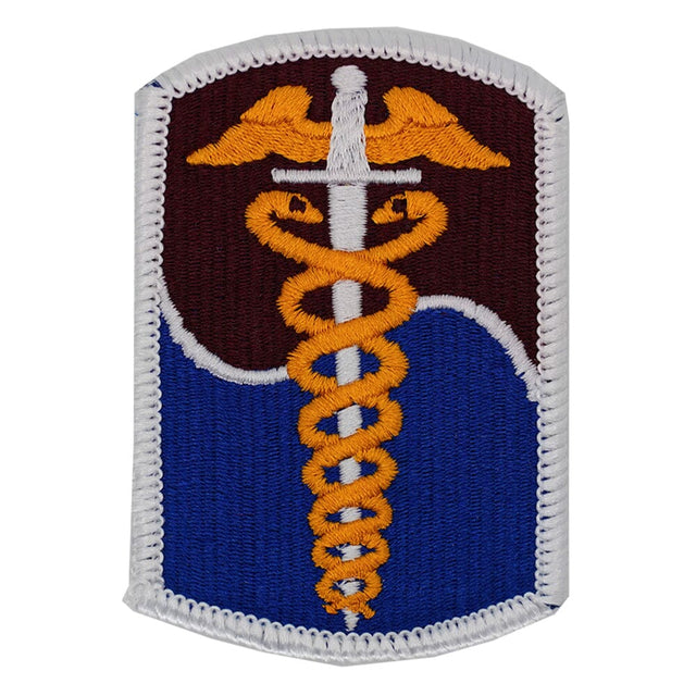 Criteria: The United States Army 65th Medical Brigade Class A Patch, also known as the Shoulder Sleeve Insignia (SSI), represents the 65th Medical Brigade, which provides medical support and healthcare services to U.S. forces in Korea. Approved for wear in 2001 and worn on the Army Class A Uniform (Greens). Patch measures 3" high by 2" wide. Sold individually.