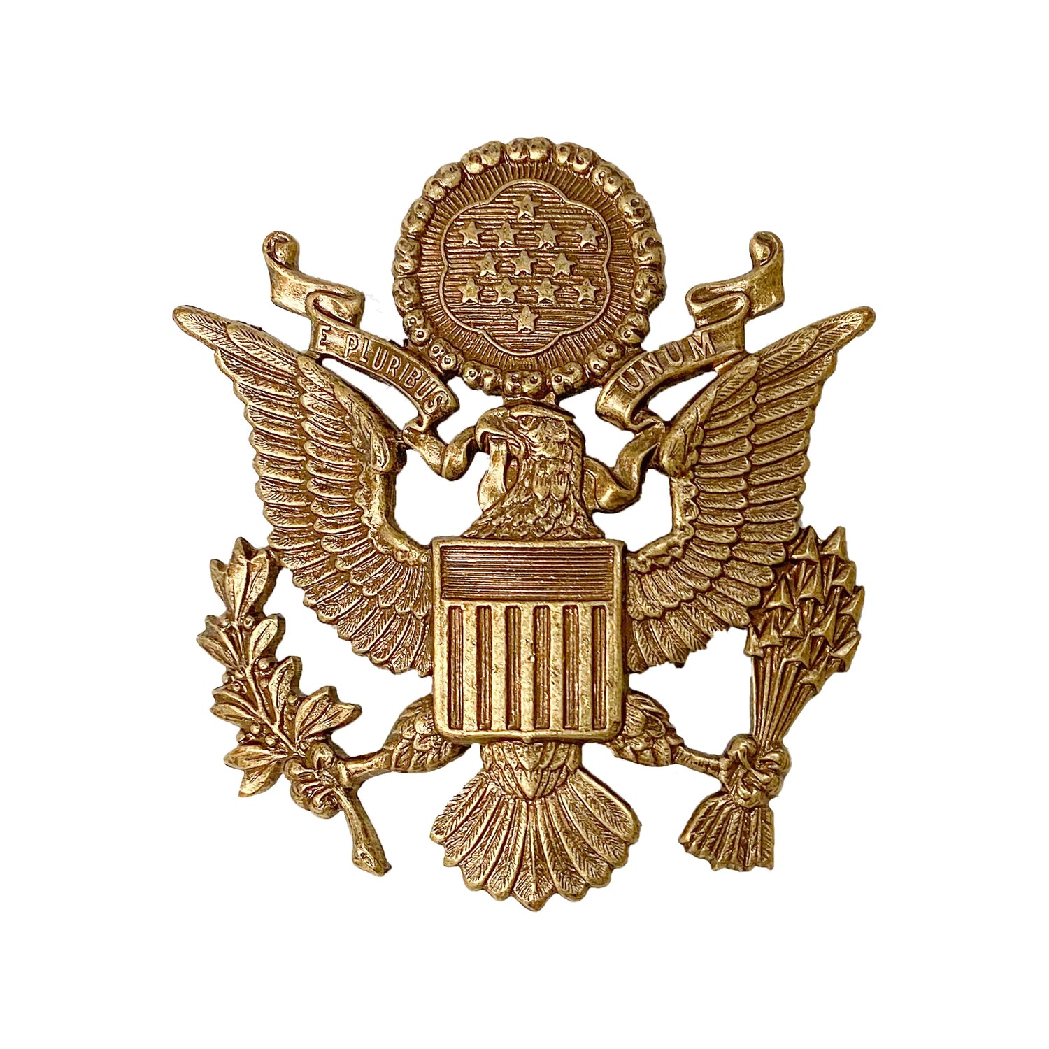 Army cap devices: Antique for Army Green Service Uniform (AGSU): Male. Worn with the Pink and Green uniform only.