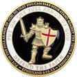 This coin pays tribute to the brave men and women of America's military, who risk their lives every day to keep liberty's lamp burning brightly throughout the world. The obverse depicts traditional pieces of armor, including the breastplate, shield, sword, and helmet.